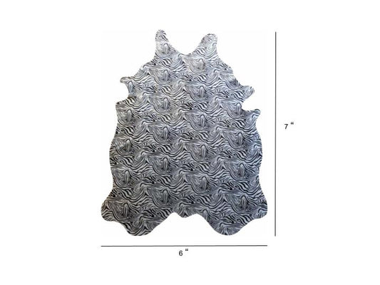 6 Ft Black and White Stenciled Baby Zebra Cowhide Rug